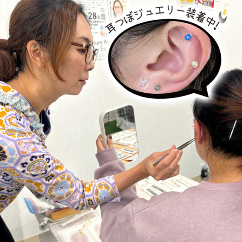 吉岡さん手製のとってもかわいいオリジナル耳つぼジュエリーシールで癒しやきらめきを体験しませんか。