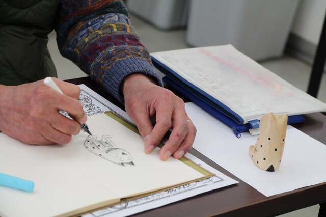 グラフィックデザイナー神谷利男さんによる、万年筆で絵を描く講座です。