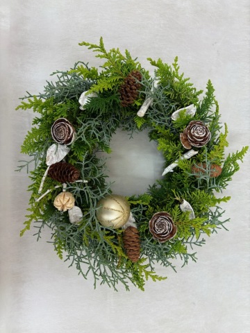 飾りつけを変えたり、色の変化も長く楽しめるリースです。