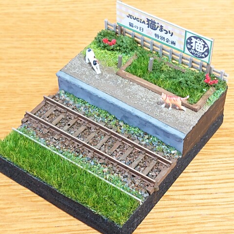 「にゃんカル ジオラマ講座 田舎の無人駅ホームを作ろう!」※猫のフィギュア付