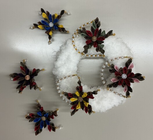 教室では、季節を感じる和のつまみ細工だけでなく、クリスマスリースなどのつまみ細工も