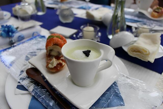 ハンバーグのパイ包み、ポタージュ、春巻の皮を用いたメニューを講師がデモンストレーションで実演。