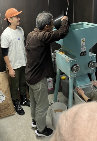 同社の志方社長によるご指導のもと、麦芽の粉砕からスタートし、醸造の一連の工程を体験します。合間にはビールについての豆知識をたっぷりご紹介。