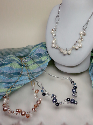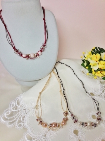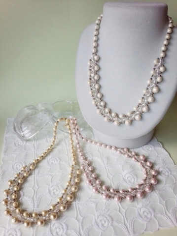 体験作品③針と糸で作る「ビーズステッチ」シュリンクパールのネックレス