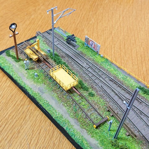 保線区車両が留置されている側線と本線の情景を「鉄道ジオラマ」として制作します!