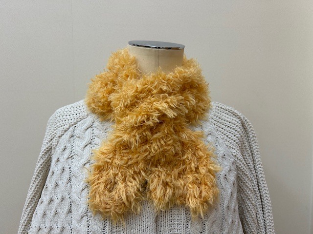 指編みでふわふわ、もこもこのかわいいマフラーを作りましょう!