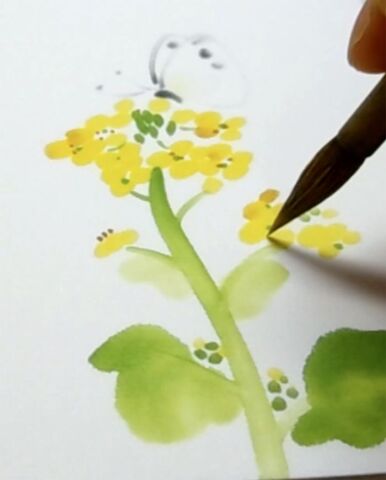 あっさり少ない筆遣い、ほんわかやさしい色遣い。
