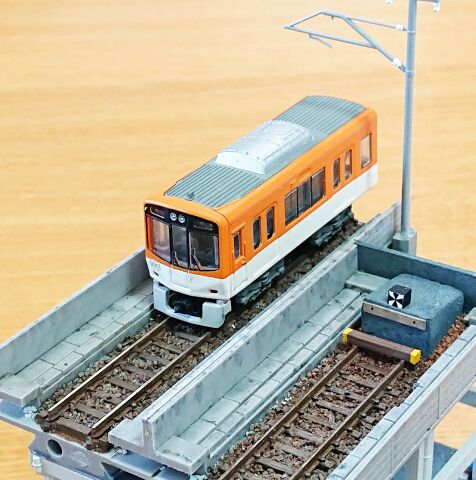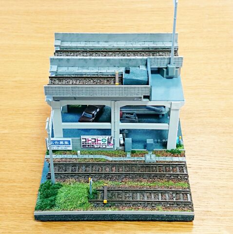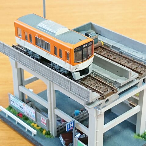 (架線柱や沿線看板など)などの小物も取り付けて、