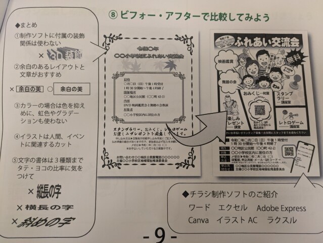 体験内容:ビフォーアフターで間違い探しをしながらチラシのレイアウトを学ぼう!