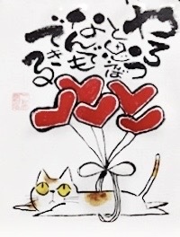 猫のイラストと暖かいメッセージで綴る己書に挑戦!