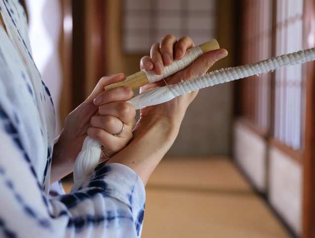 【ご当地講座】伝統工芸 有松・鳴海絞 括り職人 大須賀彩さんによる絞り体験 暖簾を染めよう