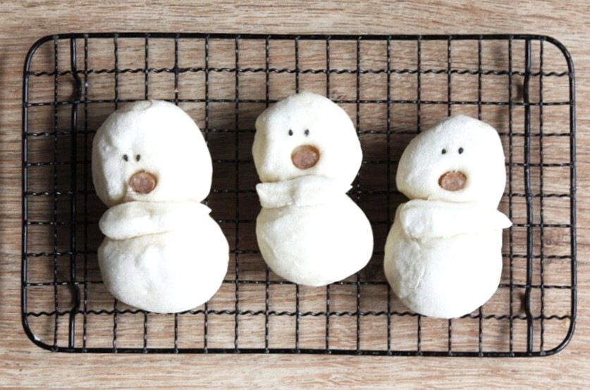 発酵済みのパン生地を使用し、ゆきだるまパンをお一人3つ作ります。