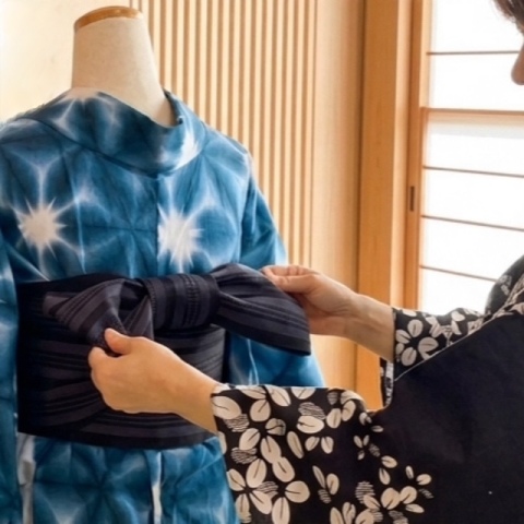 有松絞り祭りに合わせた浴衣の着付け体験講座です。