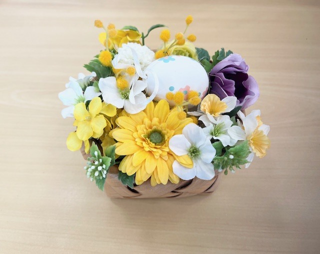 春の訪れと、卵から命が生まれることをお祝いする季節に卵がチョコンとのった可愛いお花のアレンジを飾ってみませんか。