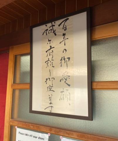 唐破風屋根の入口、京都らしい風景を描いたタイル絵、