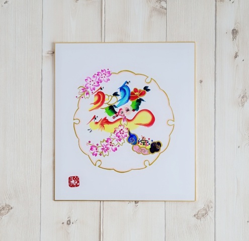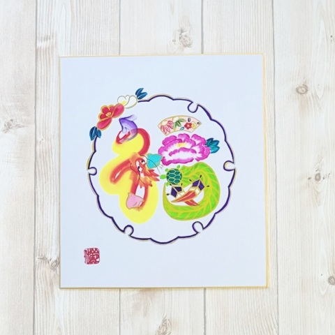 縁起の良い絵柄で漢字やひらがな等を描きます。