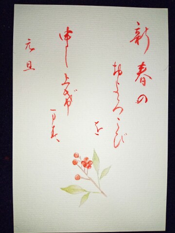 持ち物:①画仙紙はがき(Seriaで販売しているもの)②お持ちであれば書道道具、色を付けたい方は絵の具または顔彩(ない場合は先生が用意します)