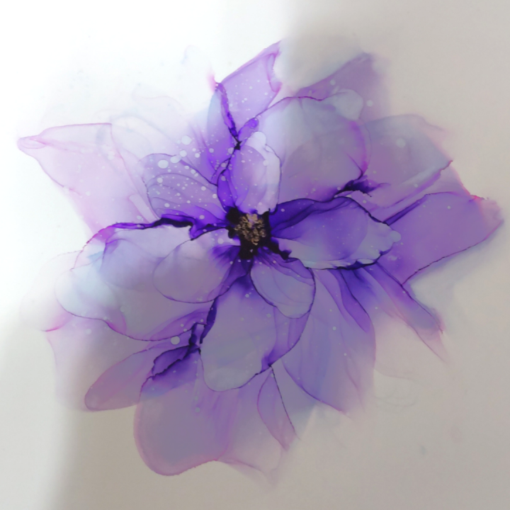 アルコールインクアートとは、専用の用紙にインクとアルコールを垂らし、風で広げて描くアートのこと。