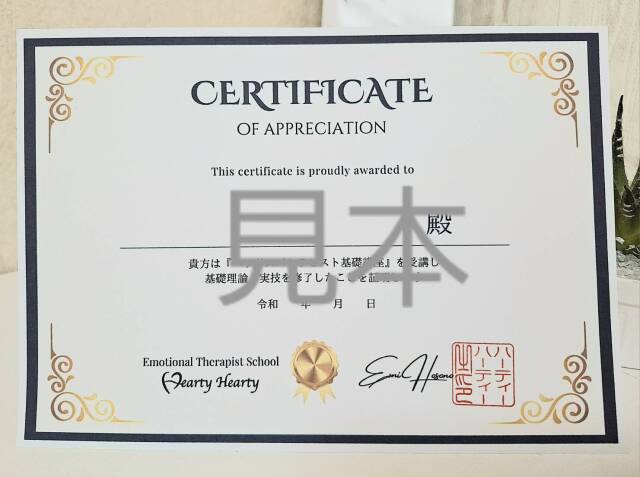 「EMハンドケアセラピスト基礎講座修了証」