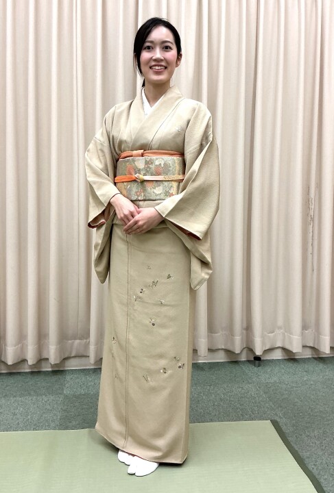 日本文化が世界的に注目されている今、日本の民族衣装である「着物」は、とても素敵でカッコイイと思います。そんな「着物」を一人で着れるようになりたくて習い始めました。「着物」の事何も知らなくても三室先生はとてもやさしく教えて下さるので毎回とてもたのしいです♪