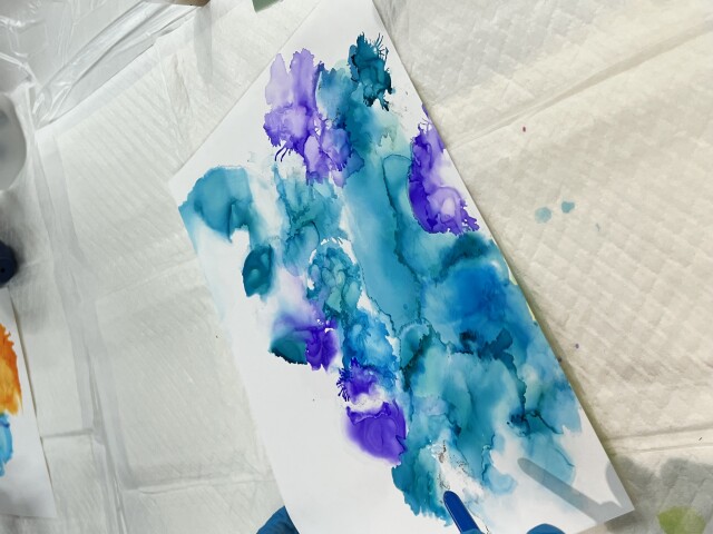 アルコールインクアートはアルコールとインクの混ざりで不思議な色や形が生まれます。