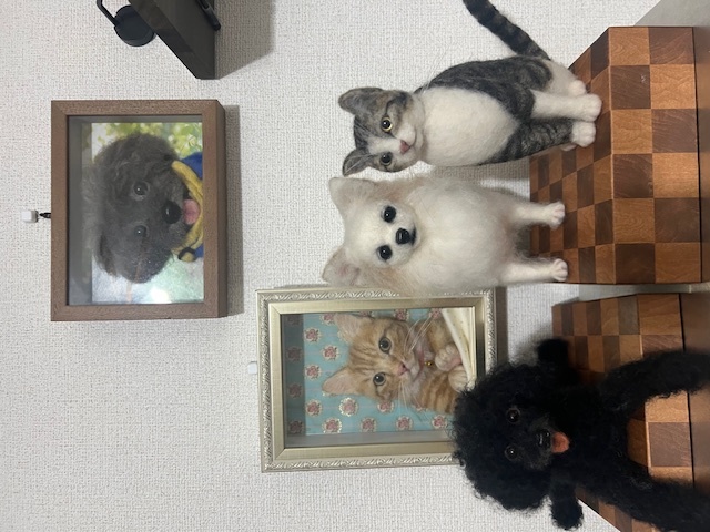 ふわふわの羊毛を専用の針で作り上げるフェルトアート。修正ができるので、初心者の方も安心して取り組めます。愛おしい表情や仕草の「うちの子」作りのお手伝いをさせていただきます。