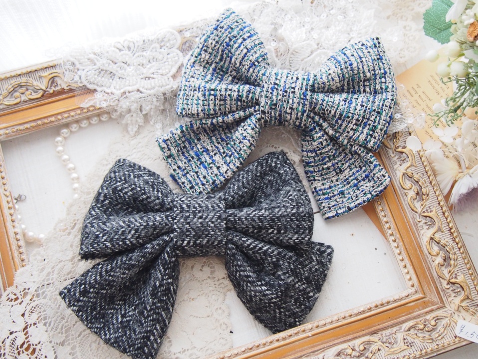 上品で季節感のあるツイードの生地でちょっと大きめの可愛いリボンを作ります。