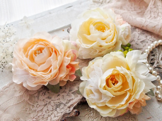 ふんわりと優しい色合いのお花で、自分好みのコサージュを作ってみませんか?