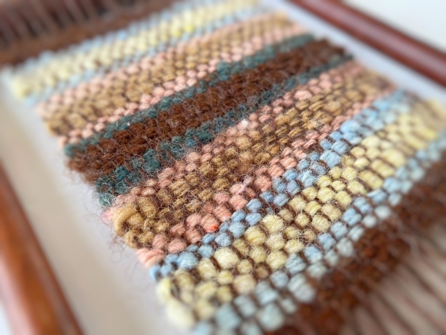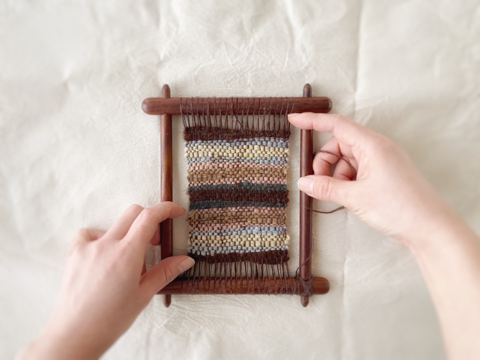 木枠の簡易的な織機を使うので、手織り初心者の方も安心。ゆったりと手を動かして作品を仕上げる時間を通じて、毛糸の温もりや草木染めのやさしい色合い、手仕事ならではの楽しさを体感できます。完成したコースターは、そのままお持ち帰りいただけます。