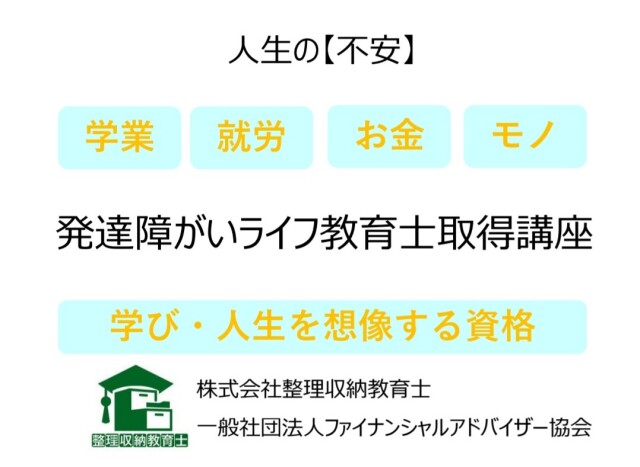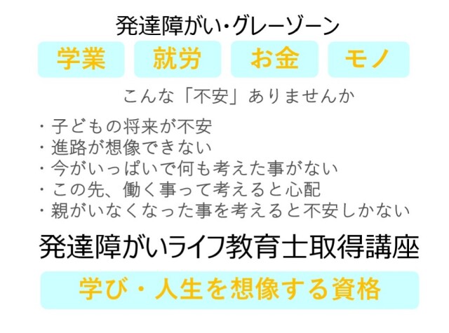 [オンライン・入会金不要・1日講座・資格取得講座]発達障がいライフ教育士取得講座 ~(学業・就労)人生に関わるお金とモノを計画想像する~