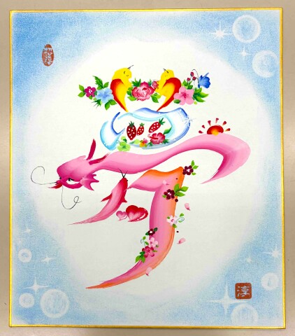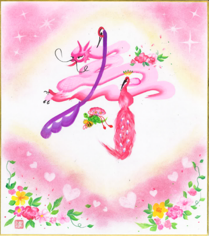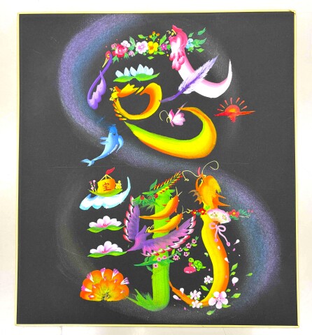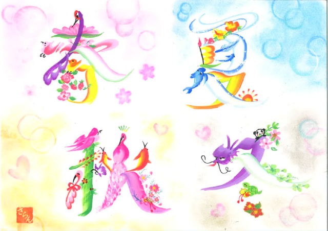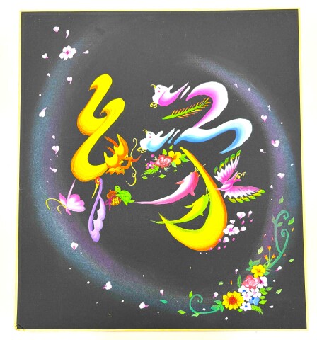 龍、花、鳥……。古来より縁起が良いとされる吉祥絵柄を組み合わせて、書き上げる「花文字」。