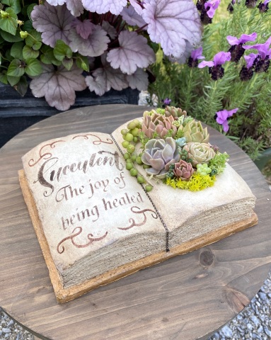 造形用のモルタルでガーデニングの可愛い鉢を作り、それに寄せ植えします。