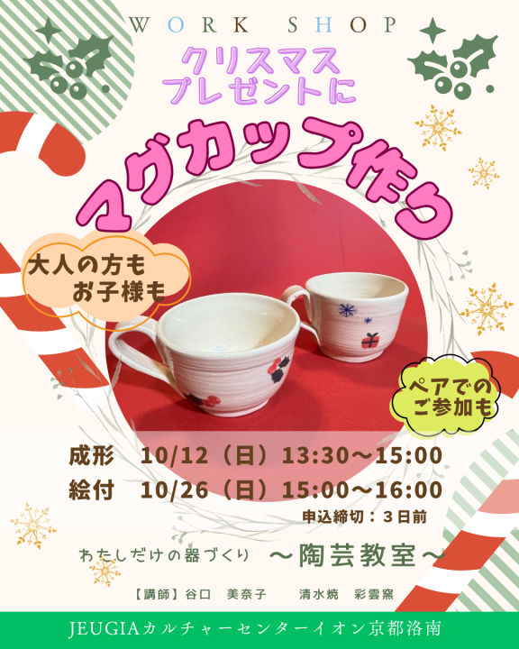 トップ 会場一覧 JEUGIAカルチャーセンターイオン京都洛南 講座一覧 わたしだけの器づくり ~陶芸教室~