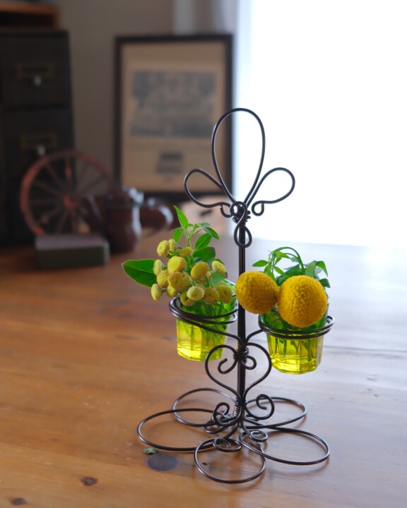 ワイヤーで作る「ツインガラスのフラワースタンド」