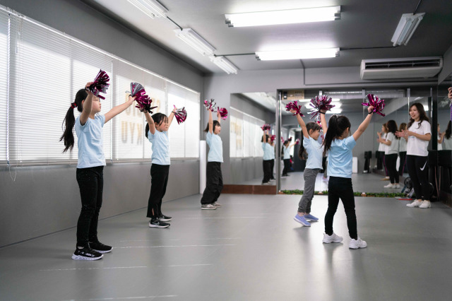 ポンポンを使ったダンスだけではなく、リズムジャンプや体操を取り入れ、