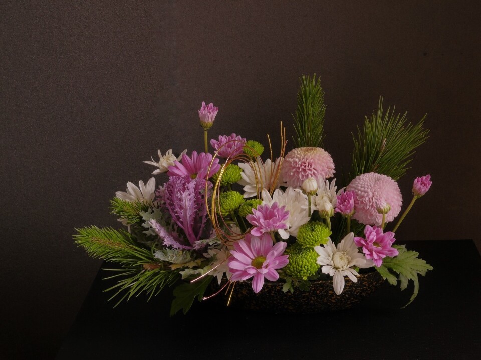 シンプルながらも華やかでモダンなお正月のアレンジです。