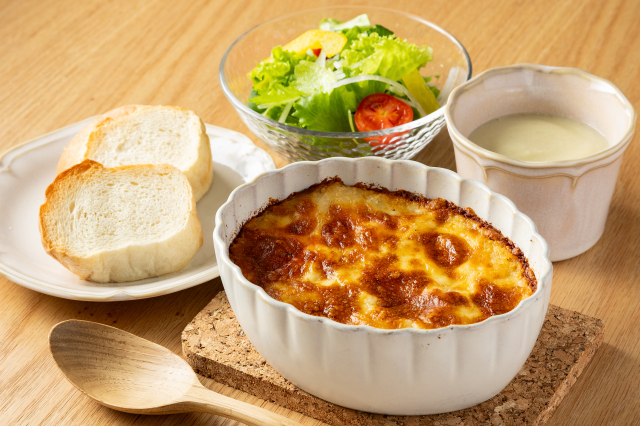 シェパードパイと一緒に焼きたてパンをご賞味ください♪