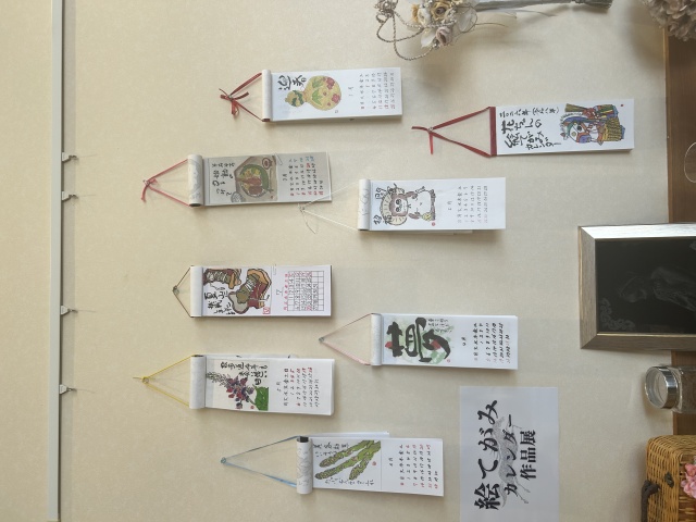 ハガキ、巻紙などへのモチーフから描きはじめます。