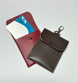 一針一針、手縫いで小さな革小物を仕立てます。