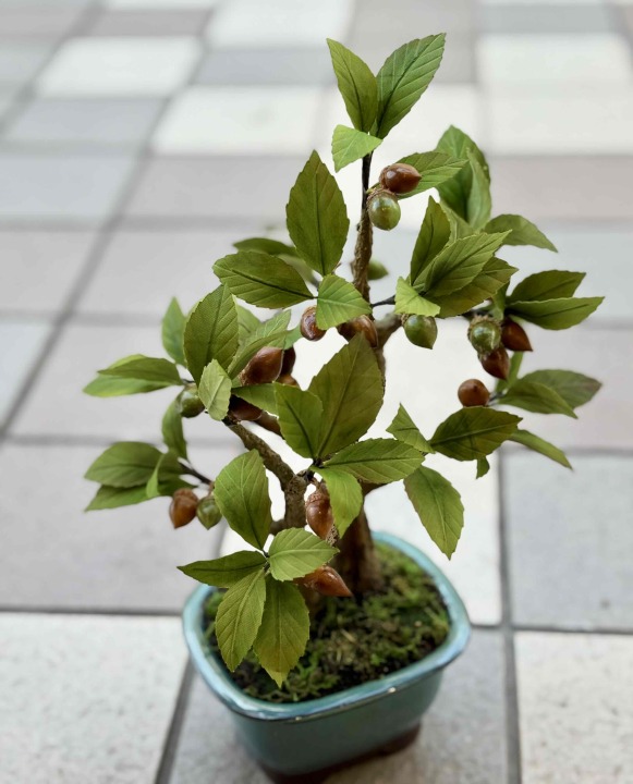 四季折々のお花や実を、布や粘土を使って盆栽仕立てに造ります。