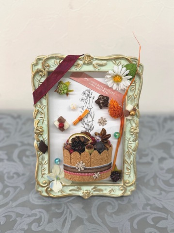 パティシエ気分で木の実やアーティフィシャル素材を使って、フェイクスイーツのケーキを作りましょう
