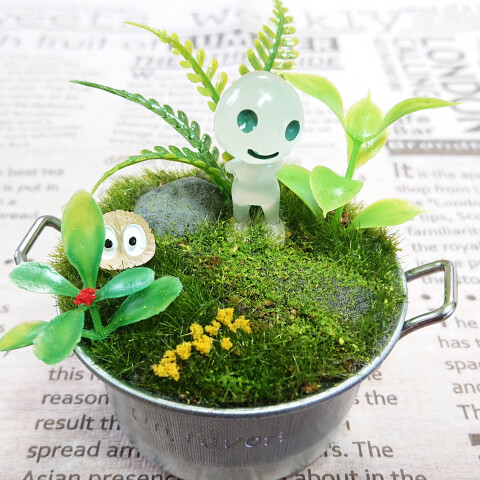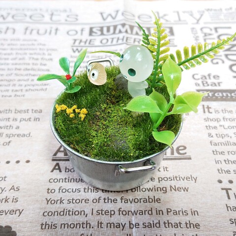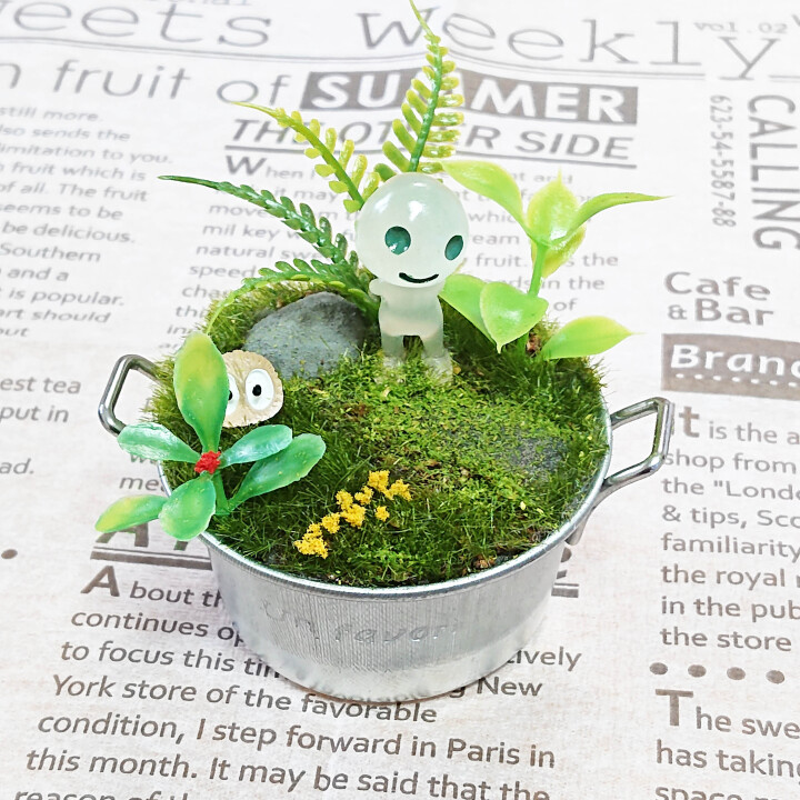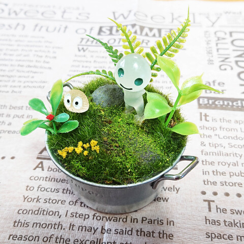 モフモフとした苔のような素材やフェイクを使って草花などを作り、そしてこだま風のフィギュアなどの小物を取り付けて、自分だけの「神秘的な苔ジオラマ」を完成させましょう~♪