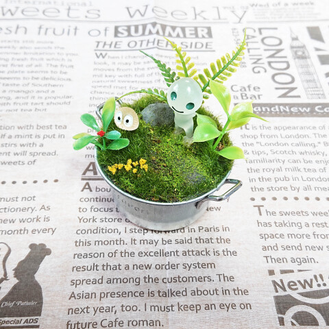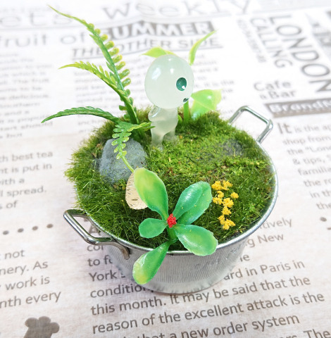 まるでジブリ作品の一場面を切り取ったようなテラリウム風のジオラマ作品を作っていきます。