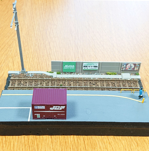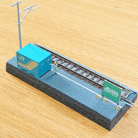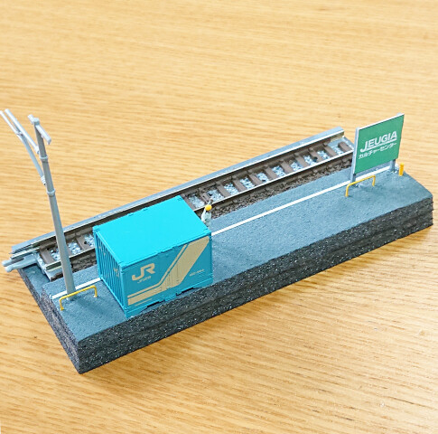 貨物列車に荷物を積み下ろす「貨物ターミナル」の情景を「鉄道ジオラマ」として制作していきます!バラストを撒いたり、鉄道施設ストラクチャー(架線柱や防護柵など)やコンテナ、鉄道作業員などの小物も設置をして鉄道ジオラマを完成させましょう~♪