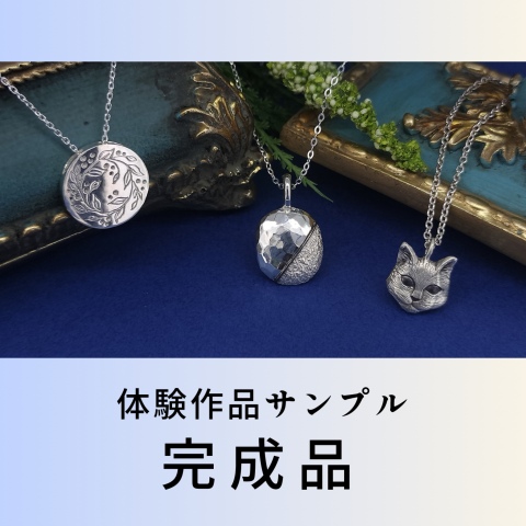ペンダントトップからスタートし技法を学びつつピアス(イヤリング)やネックレスなど世界に一つだけのオリジナルのシルバーアクセサリーが作れます。