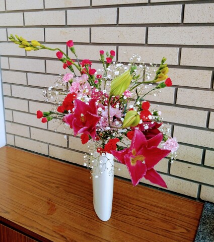 レッスンで使ったお花は、皆さんご自宅でも楽しく生けてくださってます。第1・3火曜日の夜に受講していただけますので、お仕事帰りのリフレッシュにもぜひお越しください。