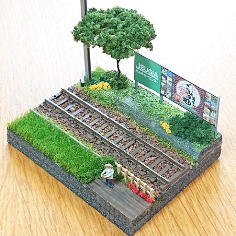 手のひらサイズ(幅(約)6cm、奥行き(約)6cm)の可愛らしい情景を「鉄道ジオラマ」として制作していきます!