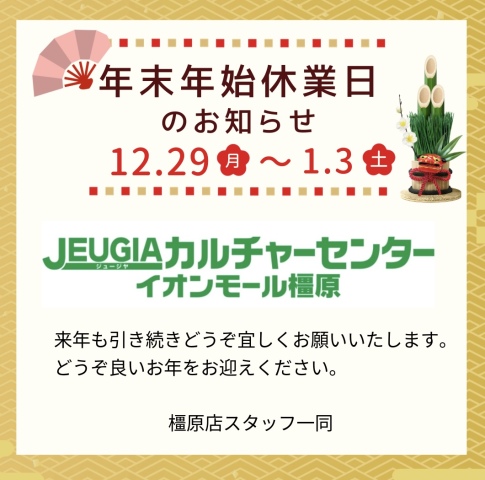 トップ 会場一覧 JEUGIAカルチャーセンターイオンモール橿原 ニュース一覧