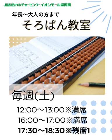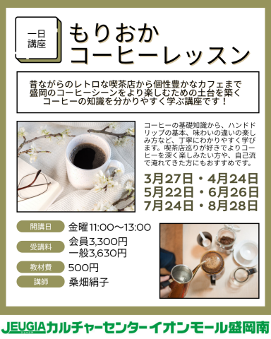トップ 会場一覧 JEUGIAカルチャーセンターイオンモール盛岡南 ニュース一覧